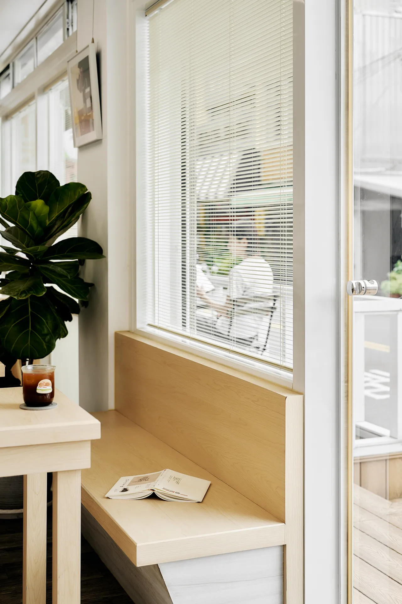 安裝整面的窗戶,營造視覺上開放的空間感! 櫃台設計外帶窗台,增加方便性,並將柱子與櫃台合而為一,減少空間浪費,並保有吧台內些許神秘感!